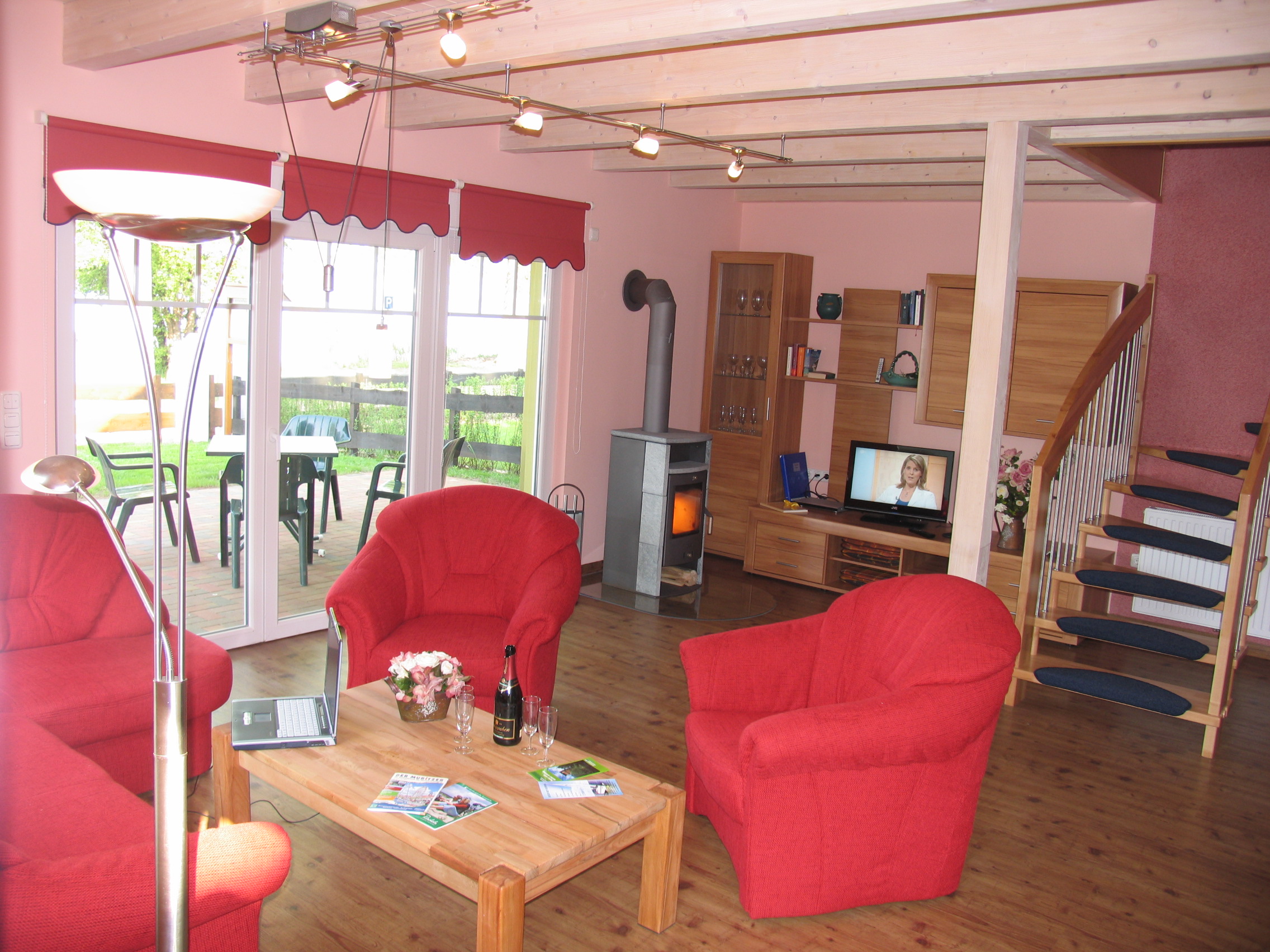 Modern und komfortabel ausgestattet, bietet das Ferienhaus alles, was Sie sich wünschen können. Vom gemütlichen Wohnzimmer mit Kaminofen und Terrasse über die zwei Bäder mit Dusche bzw. Badewanne bis zur voll ausgestatteten Küche mit großem Esstisch fehlt es an nichts